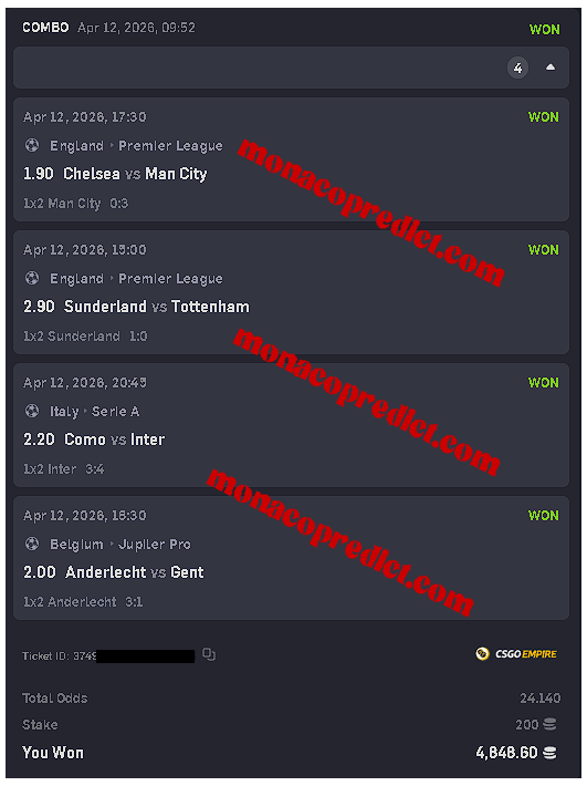 Explore our Combo Ticket Archive to review a selection of our past winning streaks and high-odds successes. Please note that this page displays only a curated portion of our historical performance to ensure fast loading times and easy browsing.