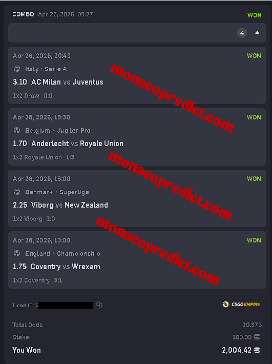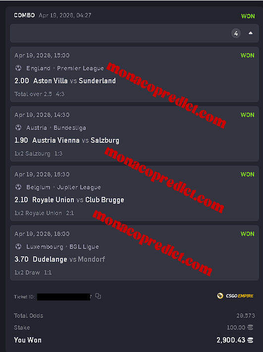 Bankroll Management: With odds consistently between 2.00 and 5.00, our service is designed to help you build your bankroll systematically, minimizing the volatility often found in large parlays or accumulators.